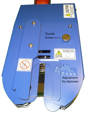 The model 3570 is the only machine on the market of this size that covers a range from 1/4" up to 1 3/8" bundles. Considered the one machine that does it all. Match the setting on the top cover with the setting at the rear under the cover.